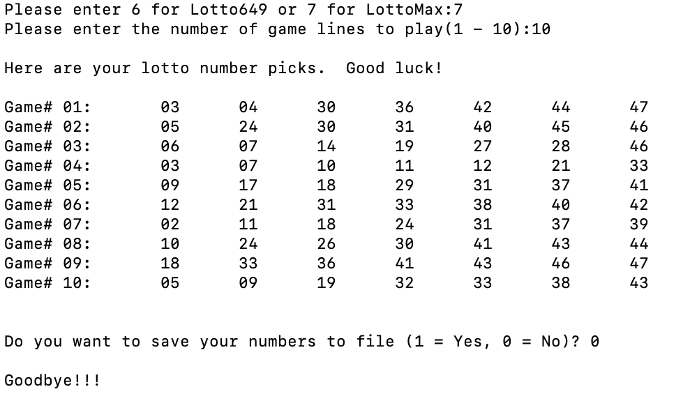 Just for fun I wanted to create a program to pick random numbers to use to play LottoMax and Lotto649. Instead of letting the lotto machines or the online system pick the numbers, I wanted an alternative for generating numbers to play. Not saying that they have brought me any extra luck as I still got to work!
