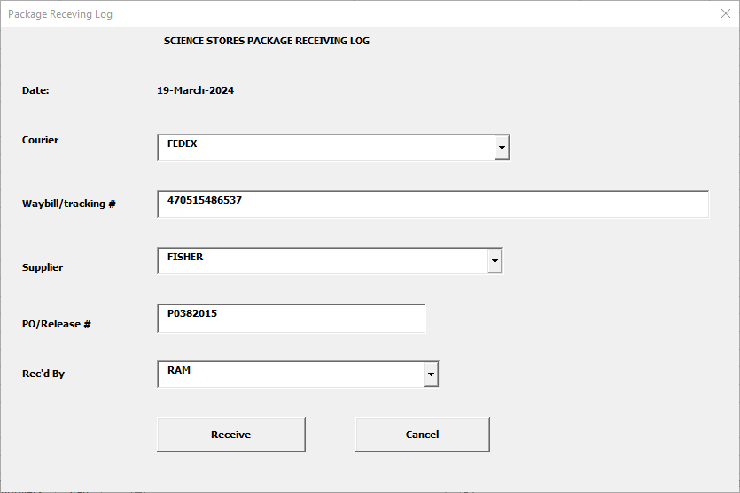 Receiving Log