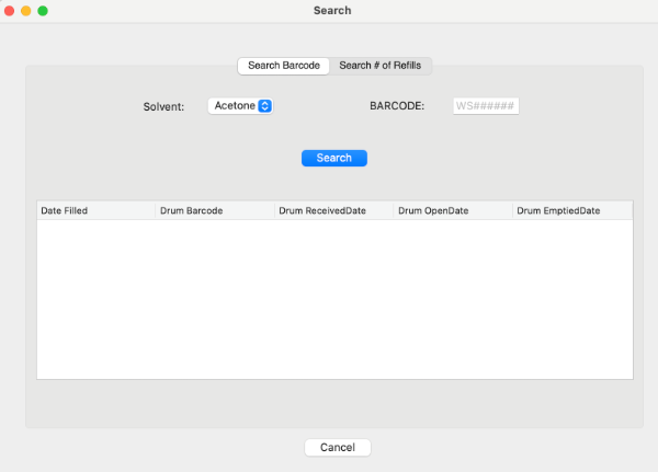 I started keeping track of the drums and the refills in a spreadsheet (see the Coding/VBA page) but knew I needed to have a better system. I took the data from the spreadsheet and converted it into a SQLite database. Then I built an app around it to be able to easily enter the drum information and perform various data searches.